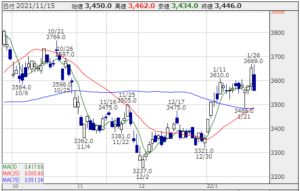 ★株価推移:3,237円〜3,769円(21/10/1〜22/1/28)