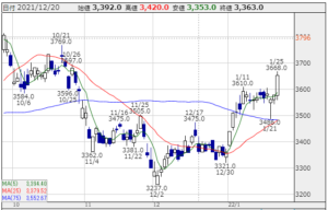 ★株価推移:3,237円〜3,769円(21/10/1〜22/1/25)