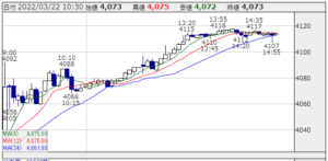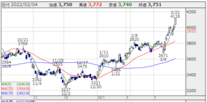 ★株価推移:3,237円〜4,118円(21/10/1〜22/3/22) !!年高・4,118円・上場来最高値!!