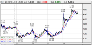 ★株価推移:3,981円〜4,166円(22/4/1〜22/4/8)