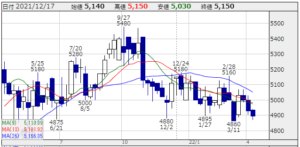 | 安値 | 4,870円 | 高値 | 4,905円 | 終値 | 4,895円(-5円) |