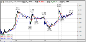 ★株価推移:3,981円〜4,305円(22/4/1〜22/4/27)