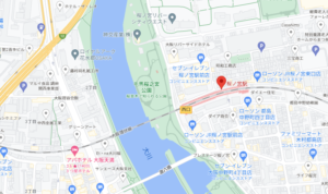 JR桜ノ宮駅の前でau5Gの測定をしました。駅からの桜がきれいに見える場所です。今年は、桜は綺麗に散ってしまいました。