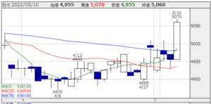 株価推移:4,870円〜5,010円(22/4/1〜22/5/16)