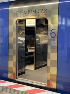 京阪電車のプレミアムカーで 祇園四条で降ります。
