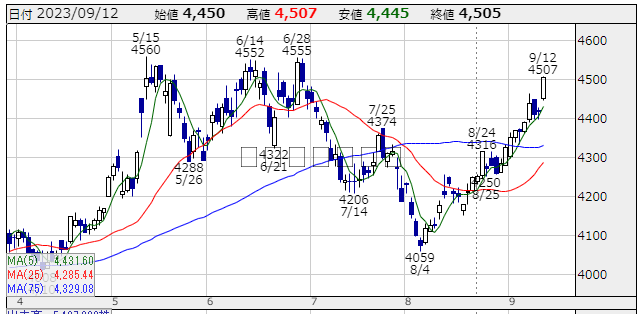 ★KDDI株 ADR:4,506円、PTS:4,500円 先物:下げ↓↓ ★権利付最終日まで残15日 ★先日4,500円突破しましたが、一日でおわりか?