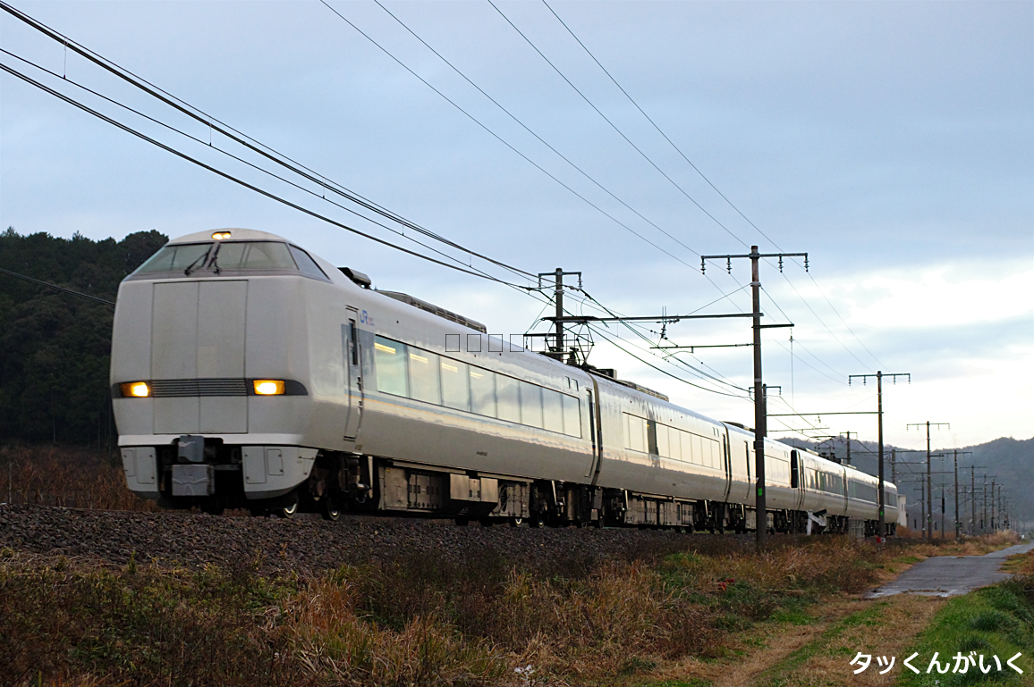 小雨の中単線区間を行く特急