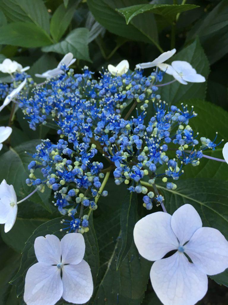 - ヤマアジサイ (Hydrangea serrata): ホンアジサイよりも小ぶりで繊細な印象があり、ガクアジサイの形が多いです。こちらも土壌のpHに反応して色が変わります。