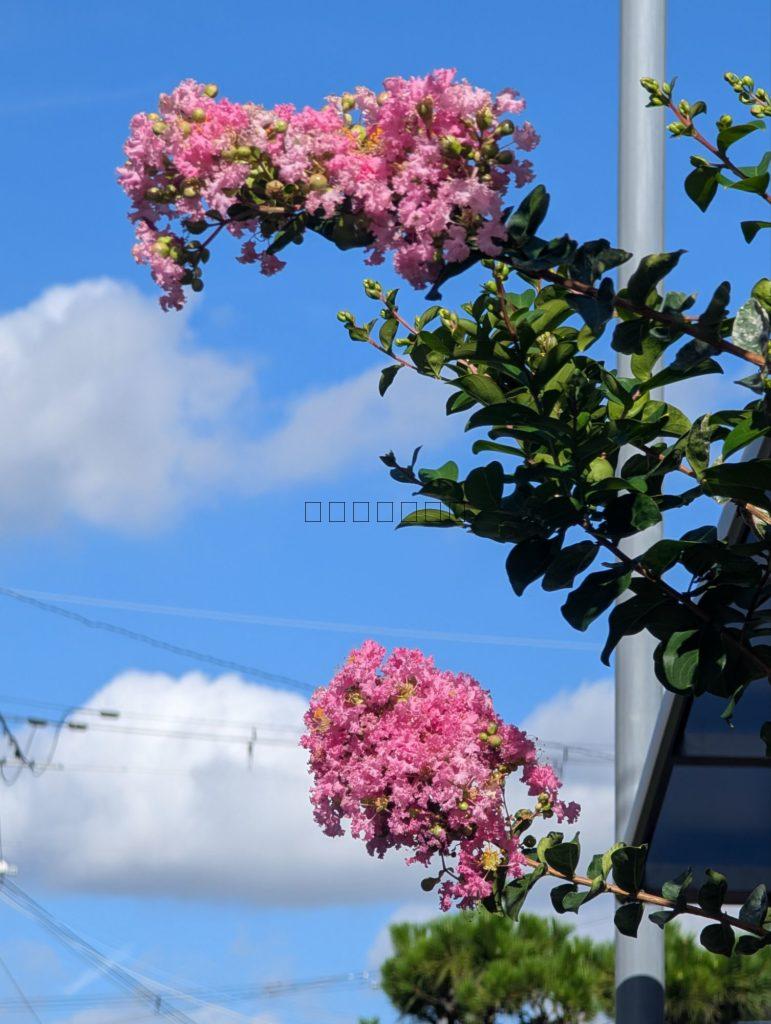 青い空とサルスベリの組み合わせは、夏の日本の風景を彩る、とても美しく印象的な光景です。